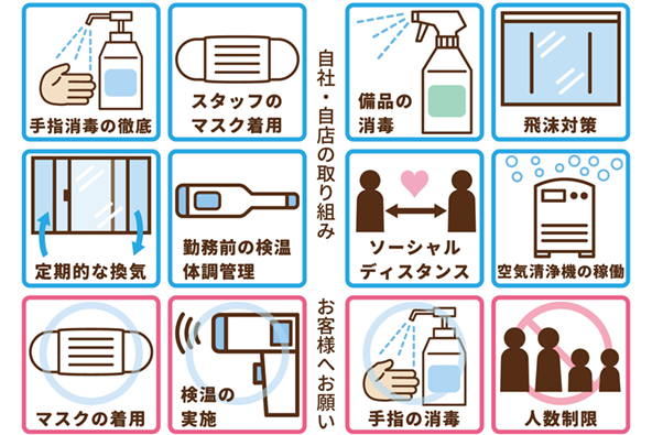 お越しいただく際は、お手数をおかけ致しますが、お客様の感染症防止へのご理解とご協力を何卒、よろしくお願い致します。